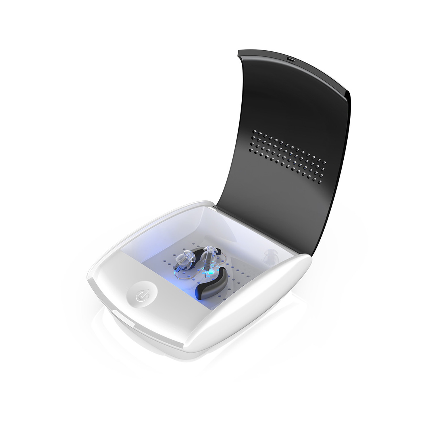 Electric dryer with UV-C light for the hearing aid wearer! The dry-sun uv 2.1 is suitable for all types of hearing aids, RIC, cochlear implant hardware, noise masking devices, INEAR monitors, ear pieces and hearing protection. The UV-C light ensures hygienic cleaning, after which the devices are dried by double-circuit heating.