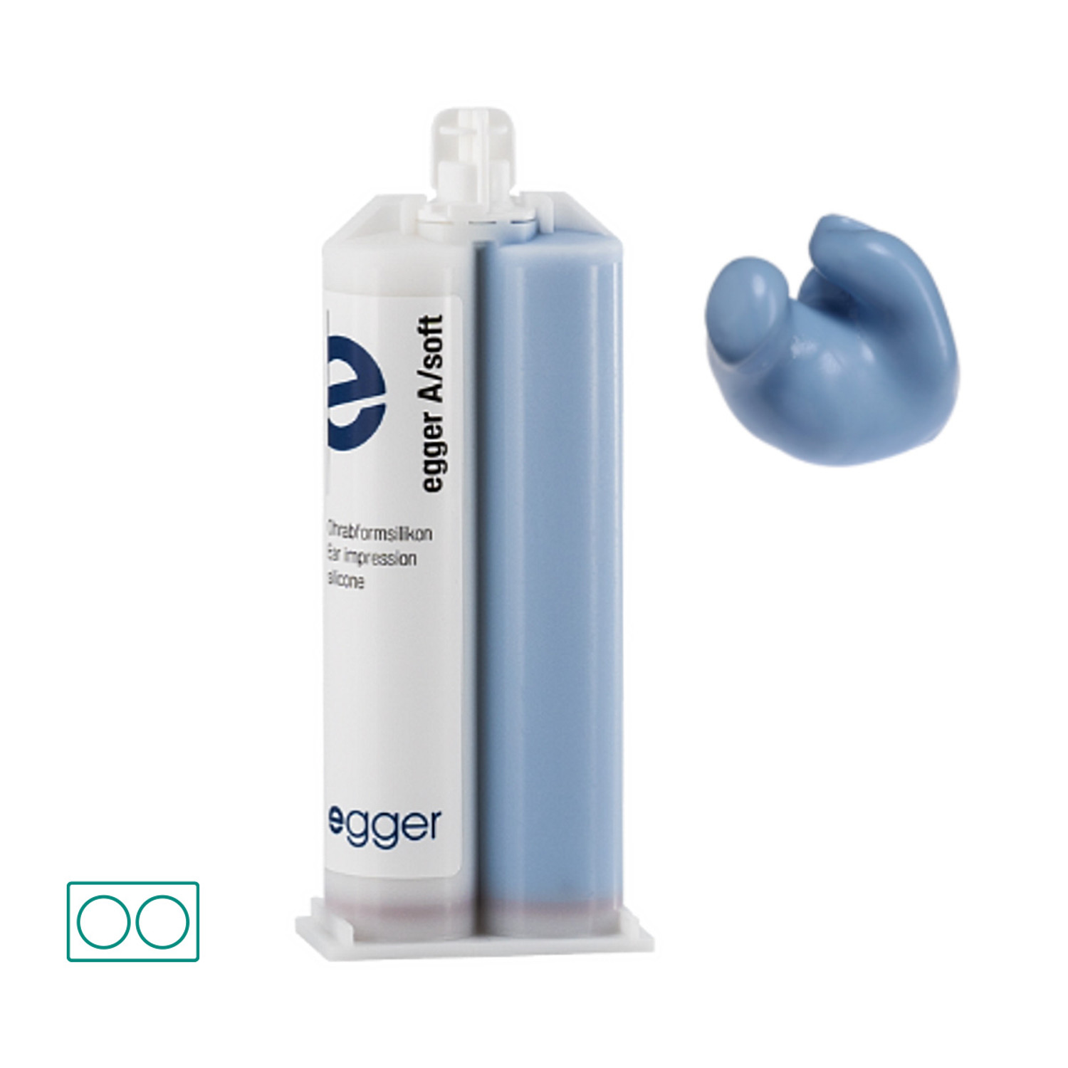 egger A/soft impression material is an addition-curing silicone material with low compression pressure and high dimensional stability. Its fine consistency, smooth handling and final hardness of 35 Shore make it ideal for precise and comfortable impressions – suitable for both hearing aid fittings and hearing protection.