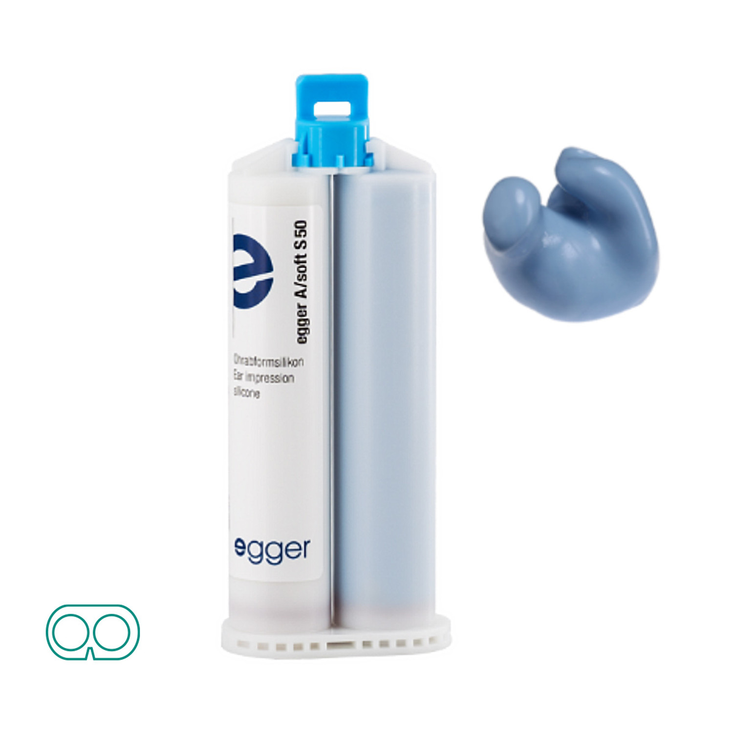 The A/soft silicone impression material in the double S 50 cartridge offers excellent flowability and a high degree of dimensional stability. The material is non-sticky and non-slippery and provides a light pressure build-up, contributing to an accurate impression that is comfortable for the client. The final hardness is 35 Shore. The A/soft impression material is suitable for a wide range of clients and can also be used for the production of hearing protection.