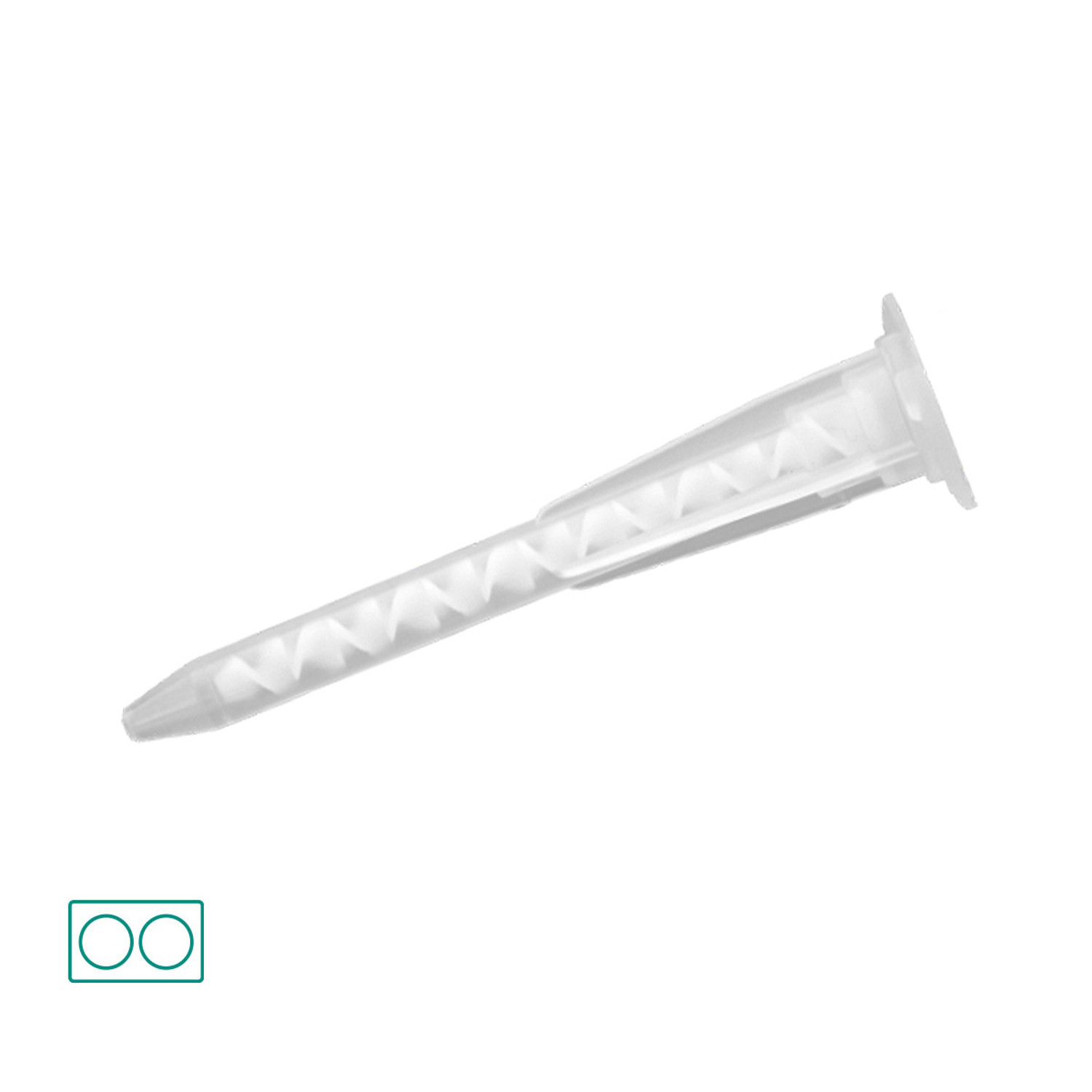 This mixing tip has a small diameter (5.7 mm) and a rounded opening. This makes this type of mixing tip ideal for taking impressions of small and narrow ear canals (for example, children's ears). 50% less material required. Also suitable for applying cold-curing silicone material in negative molds using the indirect method.