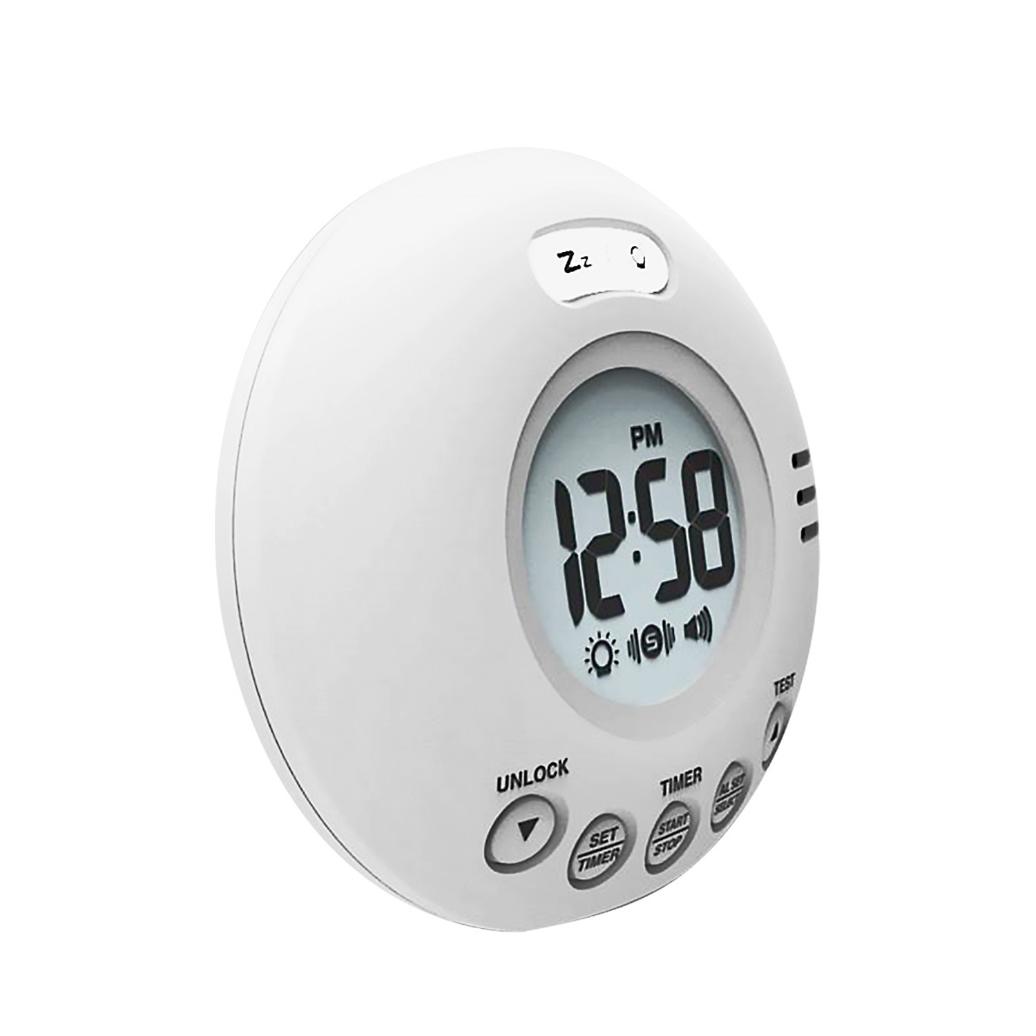 Handy alarm clock for travel. Features an extra loud wake-up alarm up to +75 dB at 1 meter distance. The volume is adjustable to two settings. Furthermore, this alarm clock features a vibration function and light flashes. Can also be used as a flashlight.