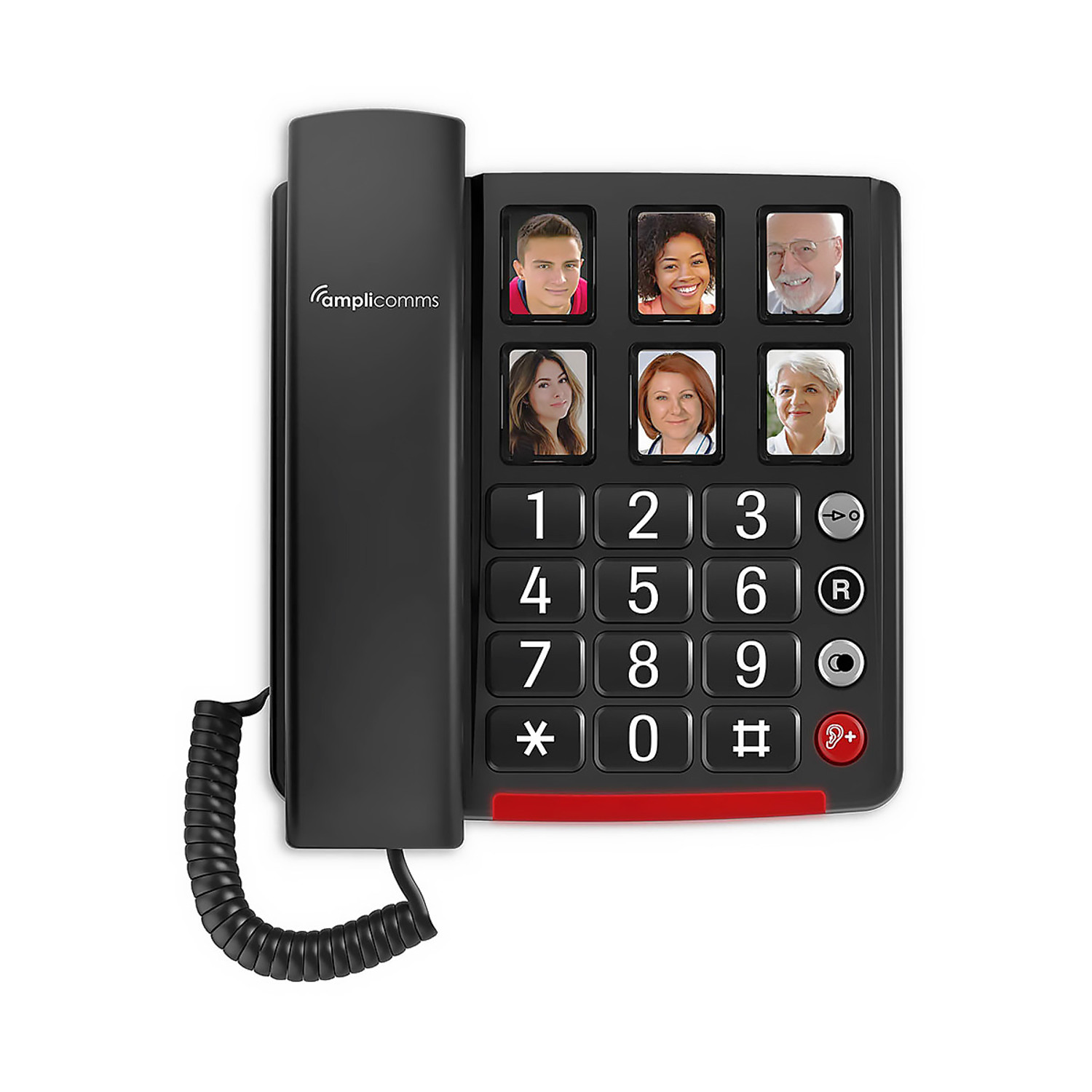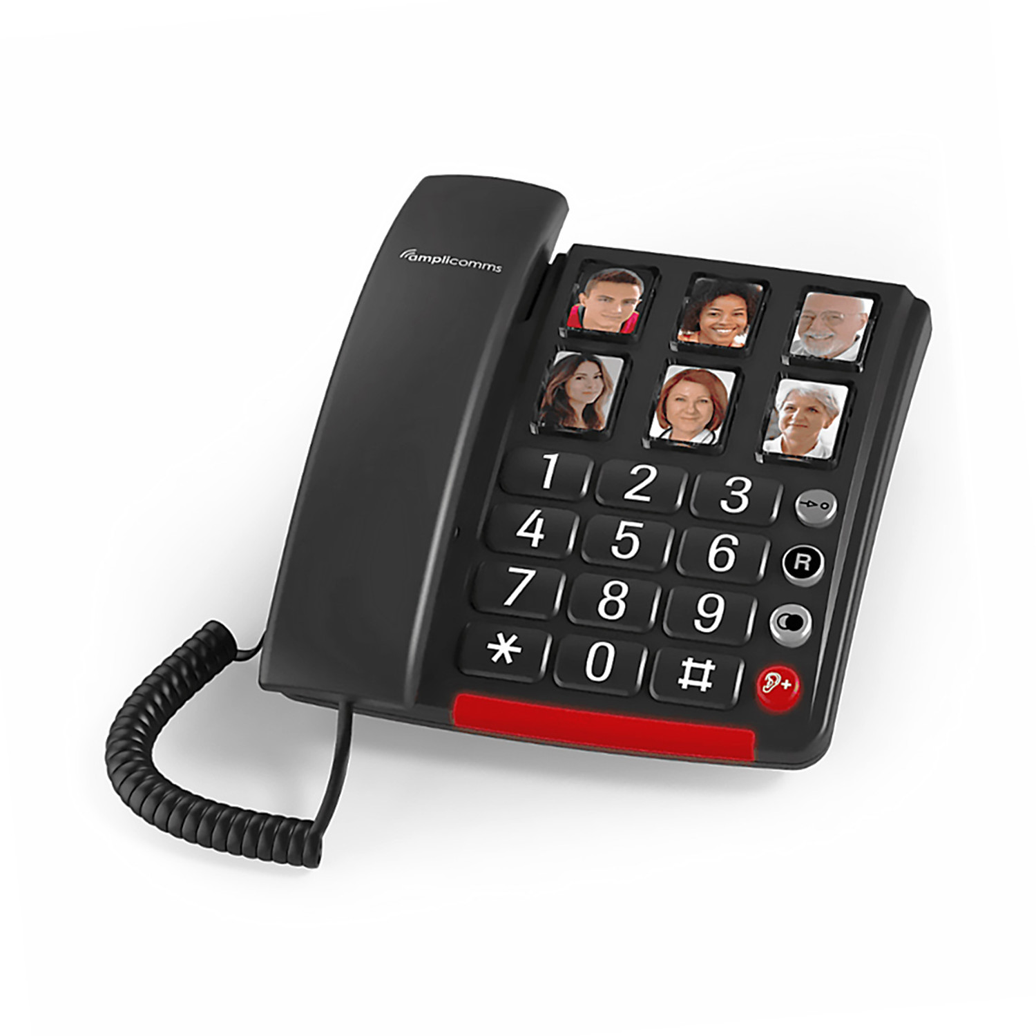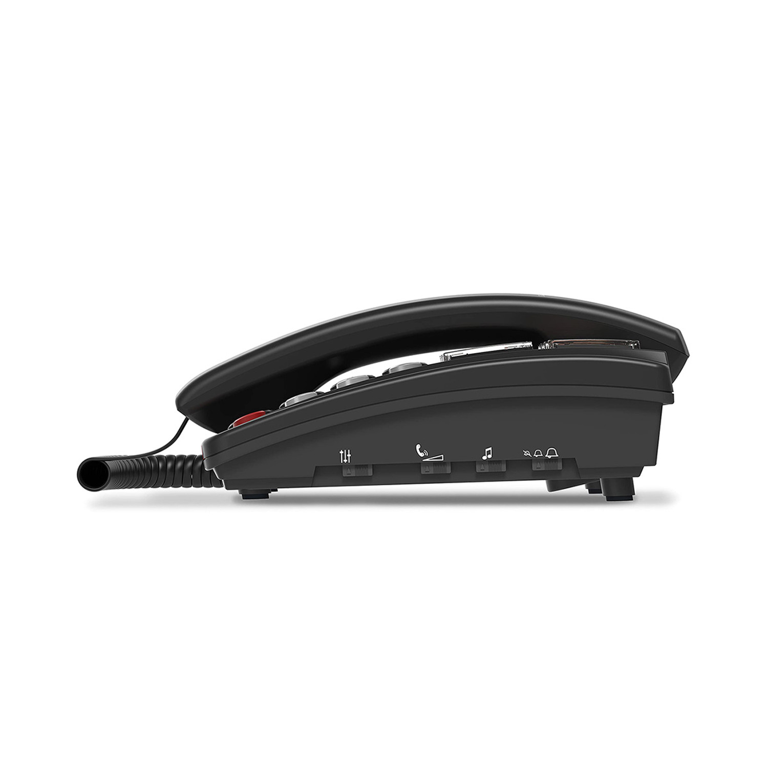 Téléphone fixe avec de gros boutons et six touches avec photos. Le volume d'appel dans le combiné dispose de 9 réglages et d'une fonction de renforcement jusqu'à +40 dB. Le volume de la sonnerie est réglable jusqu'à +90 dB. De plus, le téléphone est doté de signaux lumineux pour les appels entrants.