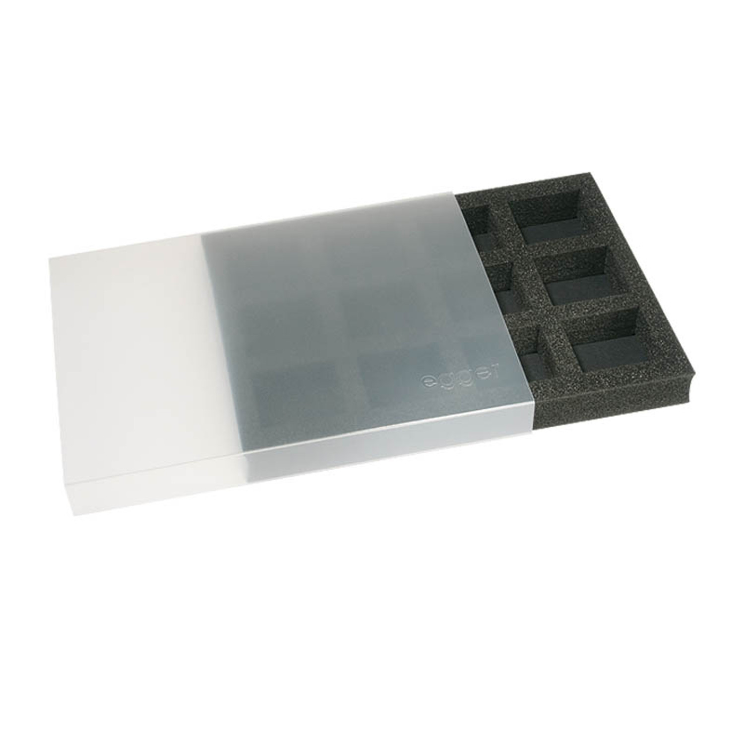 Boîte pratique avec étui comprenant 12 compartiments pour une présentation claire des prothèses auditives, des embouts auriculaires et des protections auditives dans votre magasin, lors de visites à domicile ou lors d'une foire.