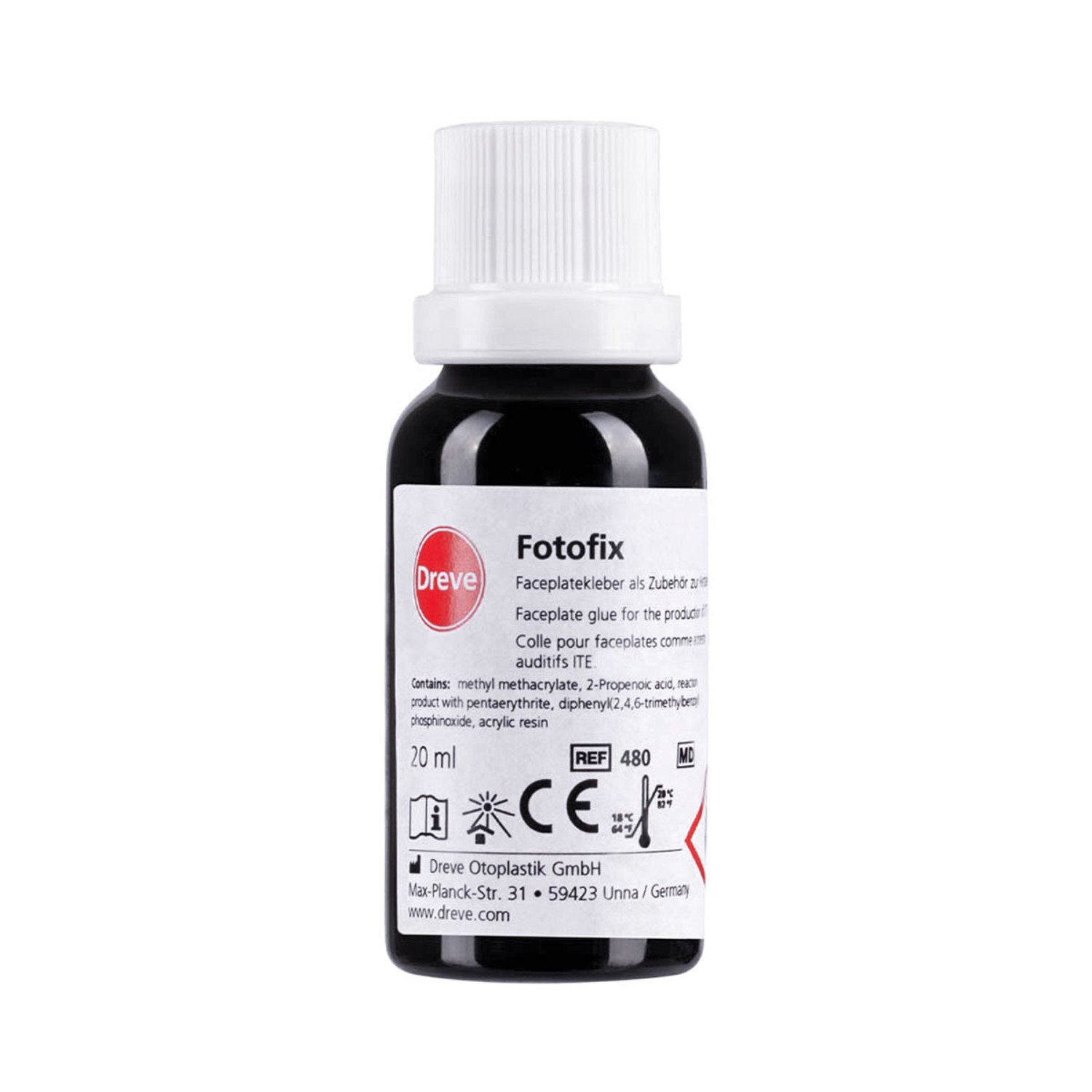Cet adhésif puissant est parfait pour coller les plaques frontales, ce qui permet son utilisation lors de la fabrication et de la réparation des systèmes intra-auriculaires (ITE). Fotofix, de couleur similaire à Fotoplast® S IO, prévient la formation de lacunes entre la plaque frontale et la coque de l'ITE.
