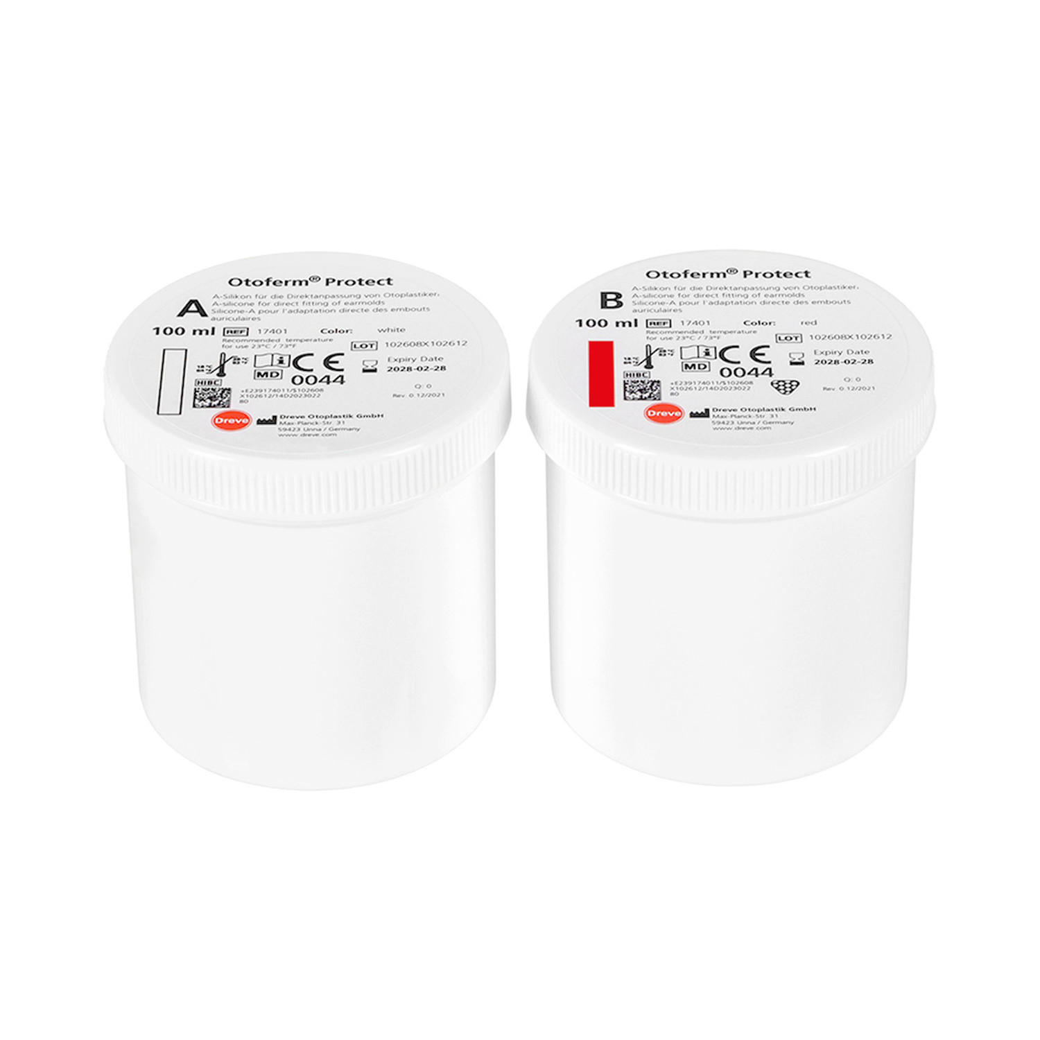 Le matériau à polymérisation à froid est exceptionnellement extensible et facile à utiliser. En raison de sa douceur extrême, les composants peuvent être très bien mélangés à la main. Otoferm Protect est appliqué avec une seringue à empreinte et a un temps de polymérisation court. Le matériau peut être utilisé à la fois par la méthode directe et par la méthode indirecte, en utilisant un moule négatif (matériau de duplication ou plâtre).