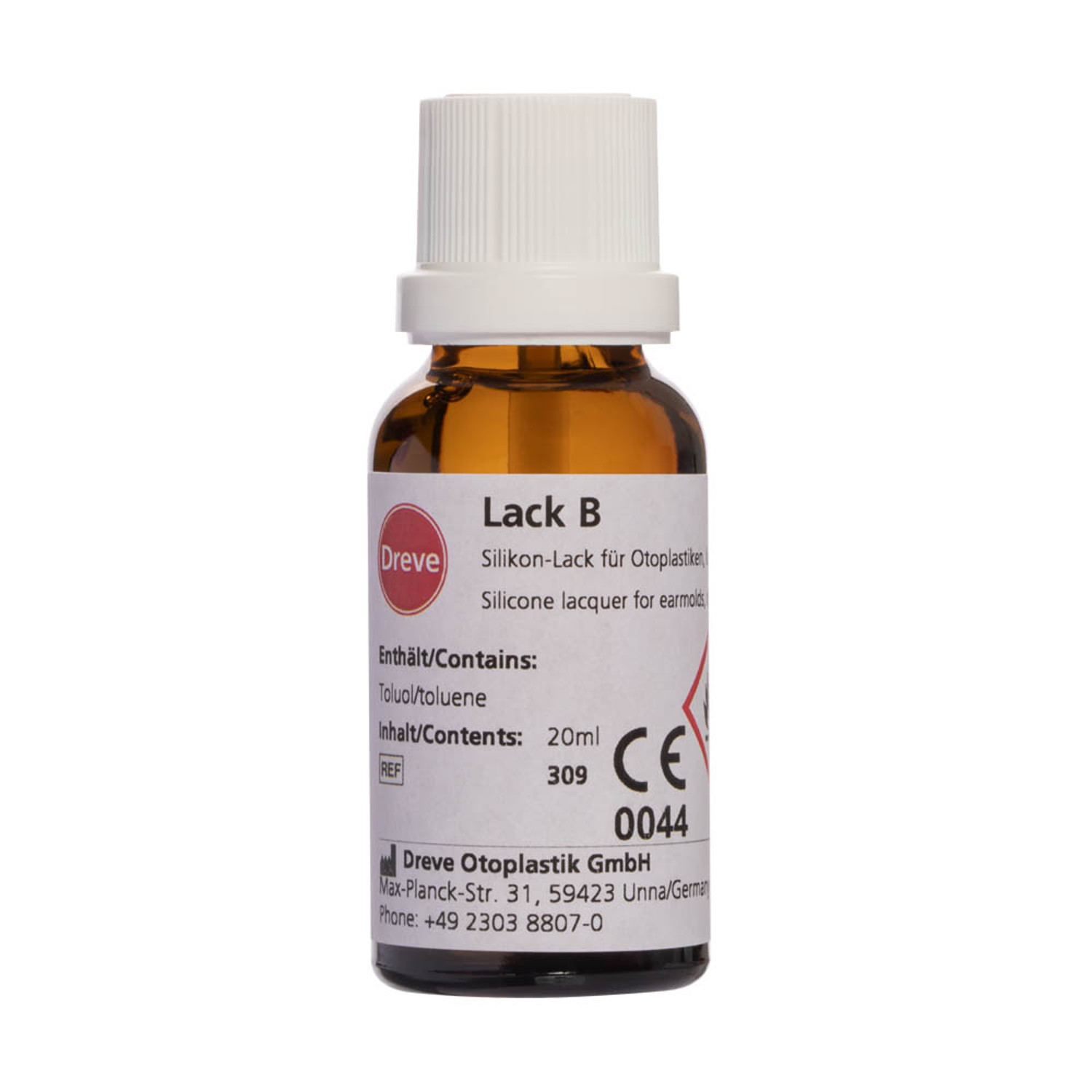 Dreve vernis B est un revêtement silicone transparent à séchage à l'air spécialement conçu pour la finition des embouts auriculaires et des empreintes. Cette laque polyvalente est idéale pour les professionnels de l'audition recherchant une finition durable, lisse et facile à nettoyer. Elle convient également parfaitement à la préparation des empreintes destinées à la fabrication de moules en plâtre ou en gel.