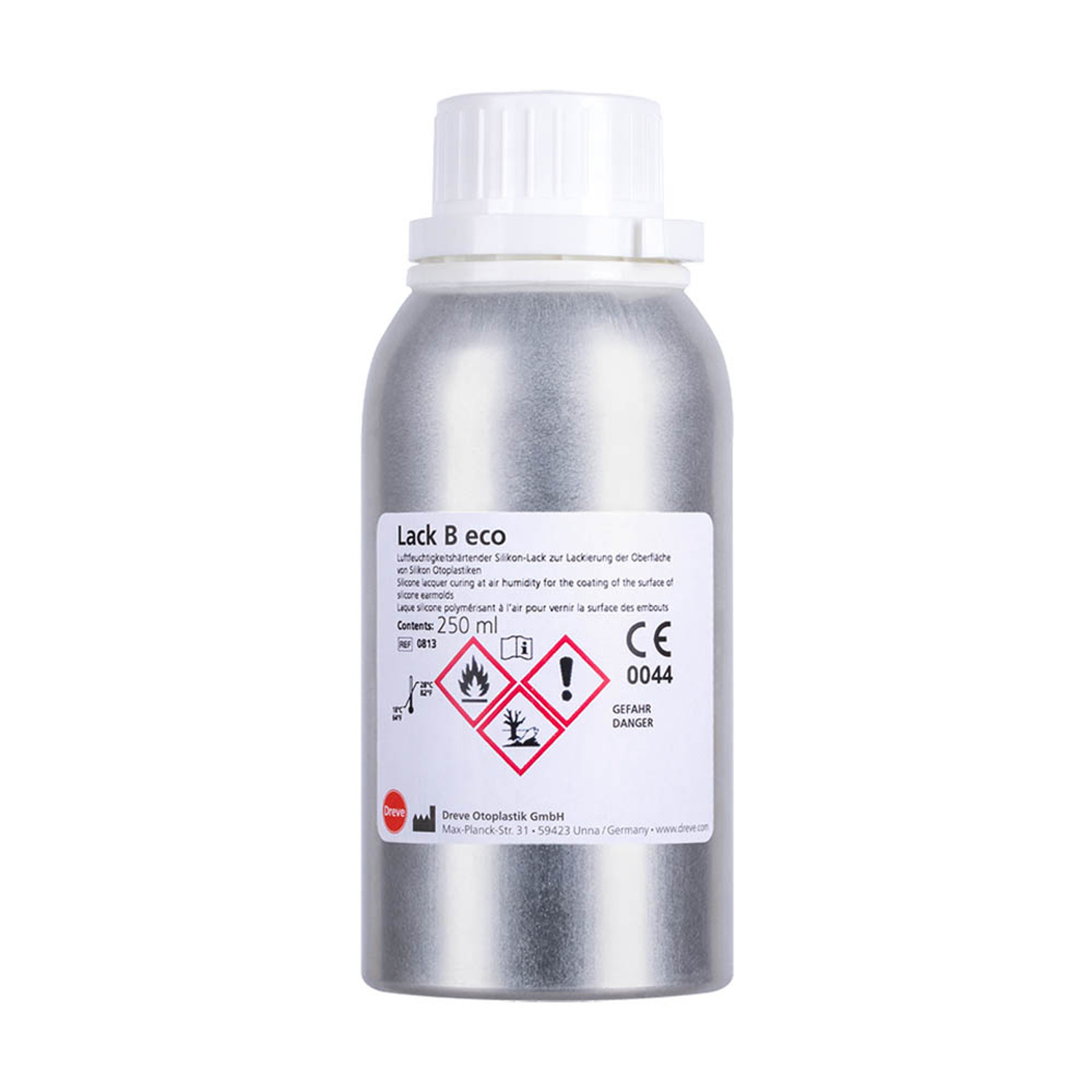 Dreve vernis B eco est un vernis silicone transparent à séchage à l’air, totalement sans toluène. Conçu pour la finition professionnelle des embouts auriculaires en silicone, il s’adresse aux professionnels de l’audition soucieux de la praticité, la durabilité et l’hygiène. Il assure un rendu lisse et brillant, agréable à utiliser au quotidien.