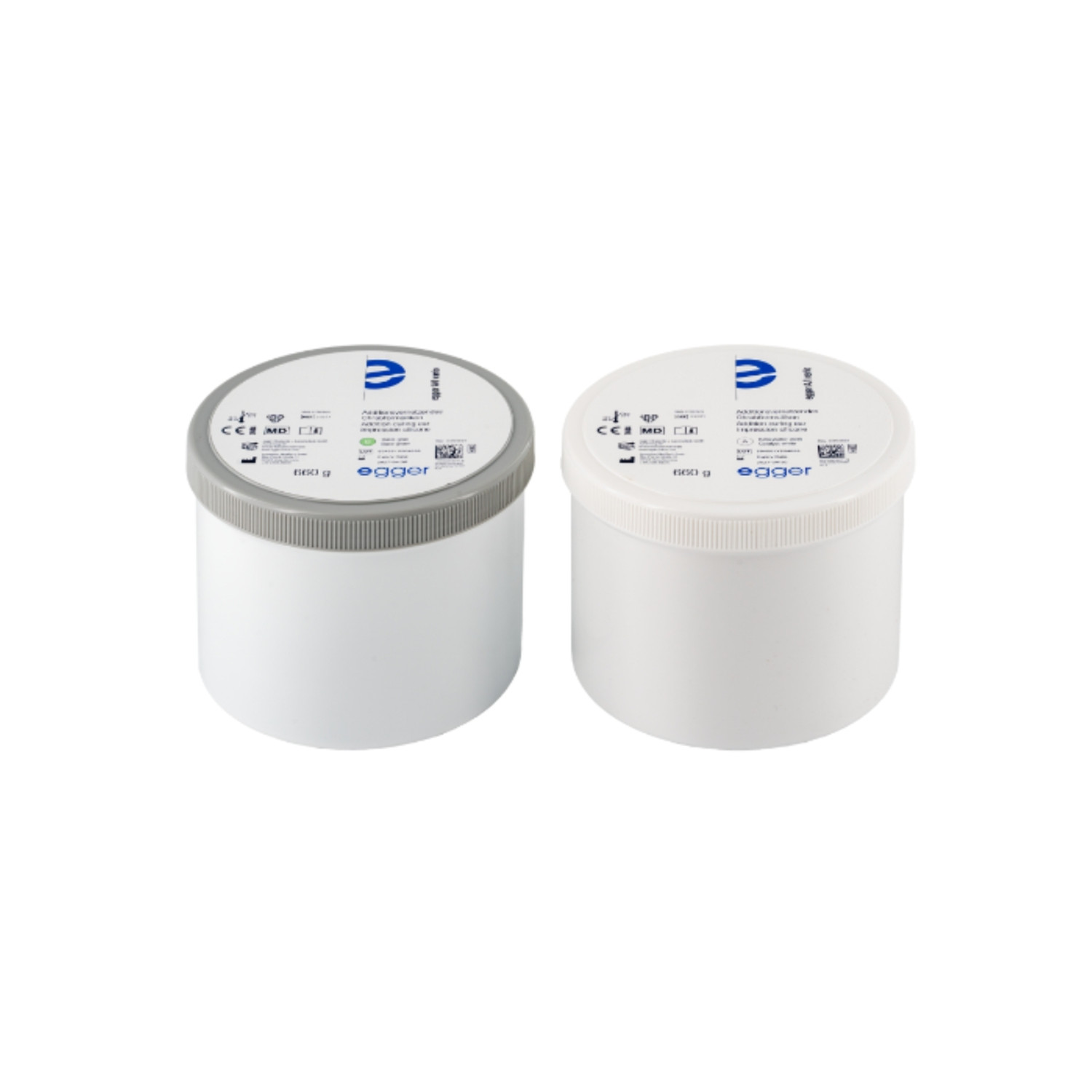egger A/I vario est un matériau d’empreinte en silicone à polymérisation par addition spécialement développé pour la prise d’empreintes auriculaires précise et confortable. Grâce à sa consistance douce et thixotrope ainsi qu’à son système de durcissement au platine, le matériau offre une excellente reproduction des détails sans retrait perceptible. Il est mélangé manuellement et injecté dans l’oreille à l’aide d’une seringue d’empreinte pour une reproduction précise du conduit auditif.
