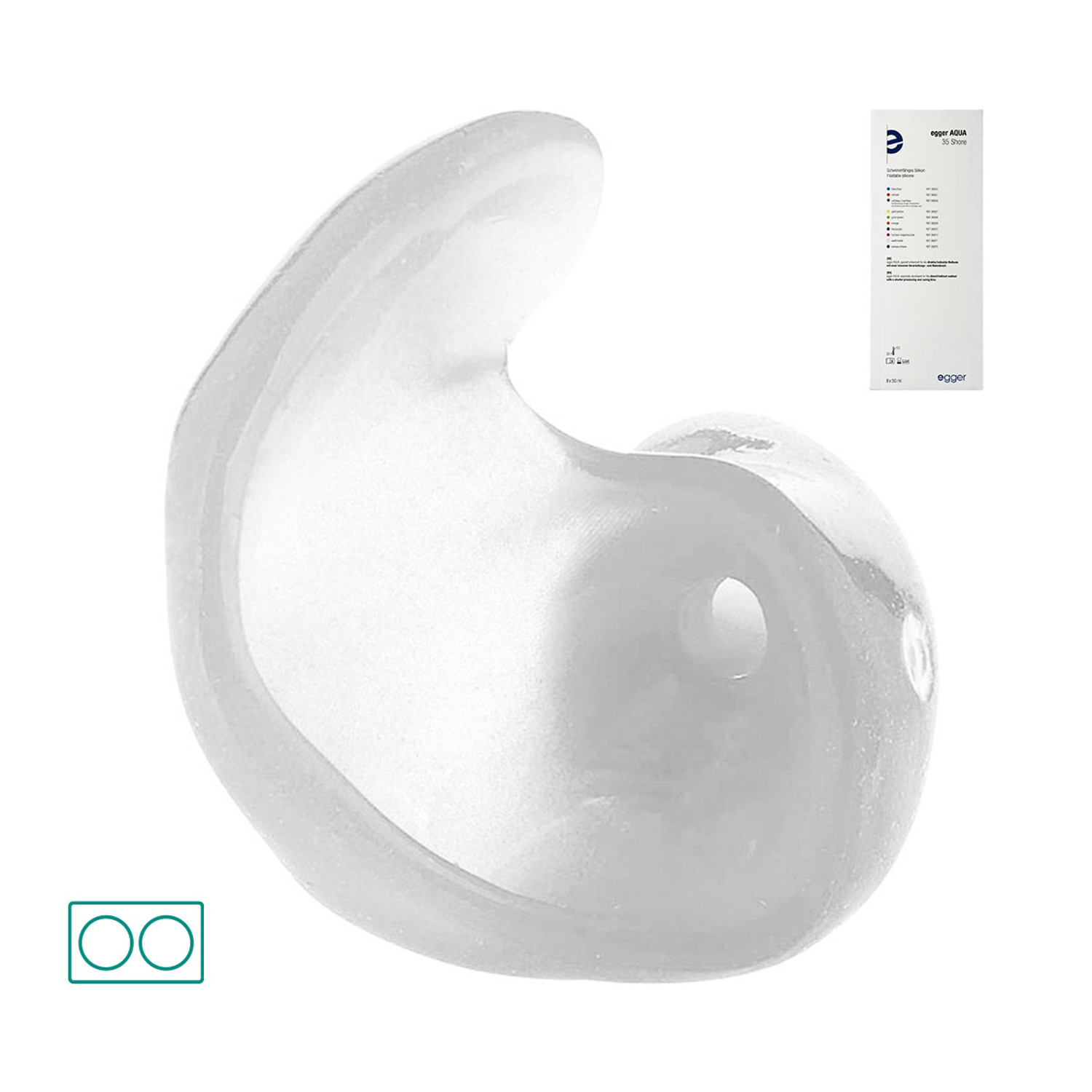 Le matériau d'empreinte Aqua d'egger est un silicone spécial élastique en permanence, adapté à la fabrication de protections auditives et de bouchons pour la natation.