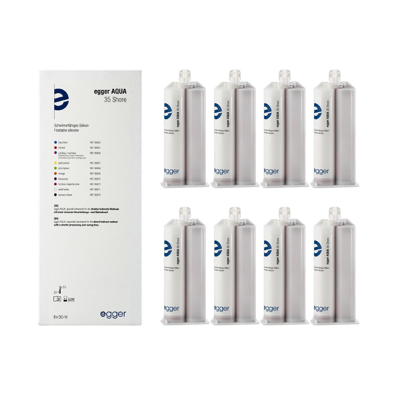 Le matériau de durcissement à froid est exceptionnellement extensible et facile à travailler. Ce matériau présente également la caractéristique pratique de flotter, ce qui réduit le risque de perte immédiate des pièces de natation en cas de chute. L'egger Aqua peut être utilisé à la fois avec la méthode directe et la méthode indirecte, dans laquelle un moule négatif (matériau de duplication ou plâtre) est utilisé.