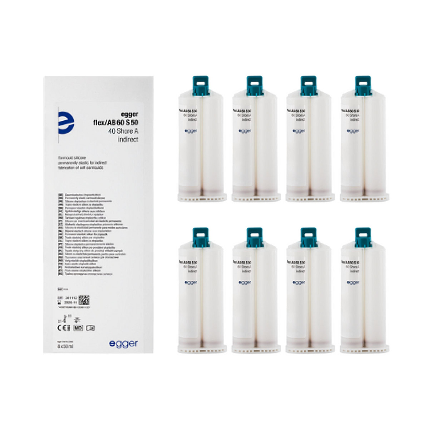 L'Egger flex/AB est utilisé avec la méthode indirecte en utilisant un moule négatif (matériau de duplication ou plâtre). La cartouche double standard a une connexion angulaire.
