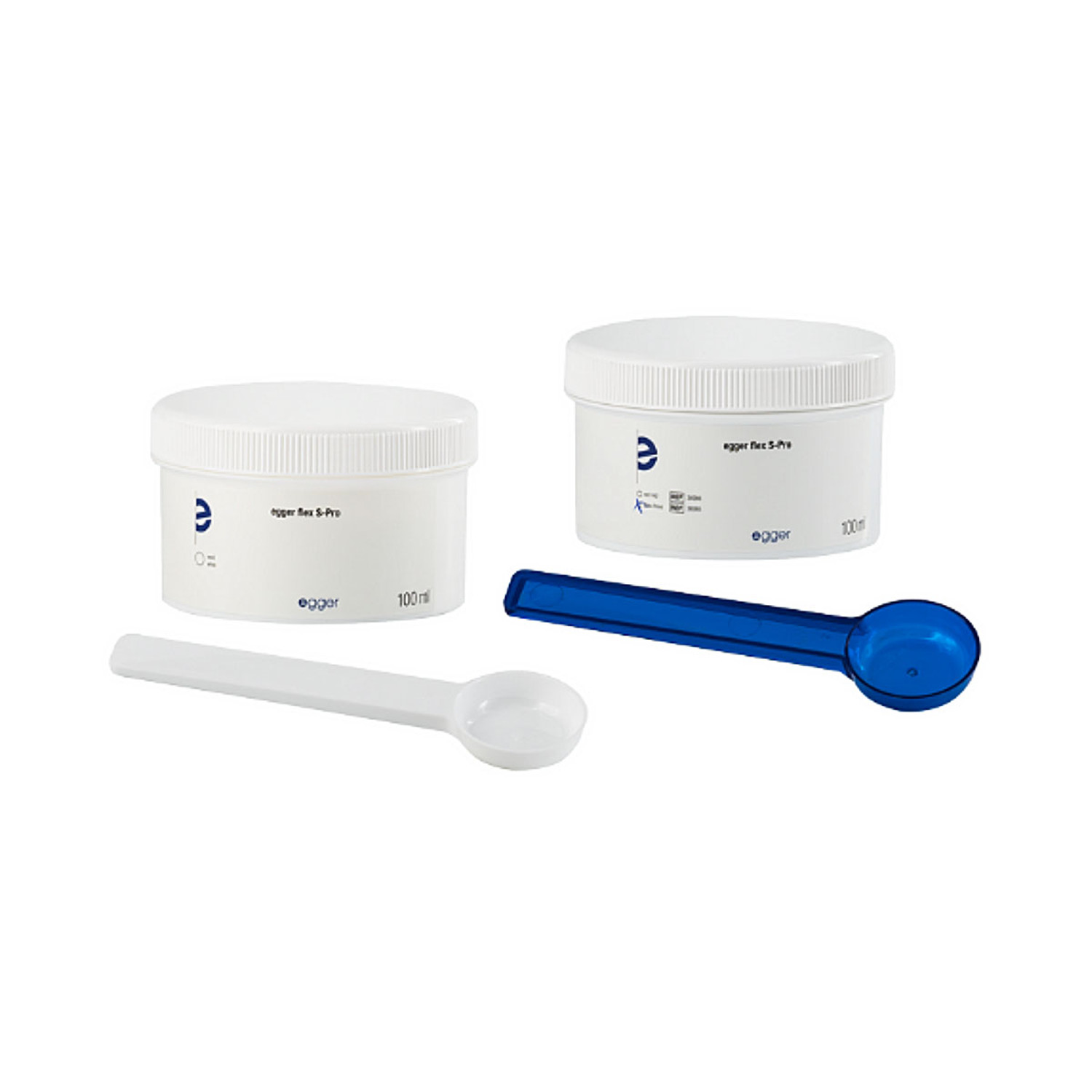 Le matériau à prise à froid est exceptionnellement extensible et facile à utiliser. En raison de sa grande douceur, les composants peuvent être mélangés très efficacement manuellement. Le flex S-Pro d'egger est appliqué avec la seringue d'empreinte egger et peut être utilisé à la fois avec la méthode directe et avec la méthode indirecte en utilisant un moule négatif (matériau de duplication ou plâtre).