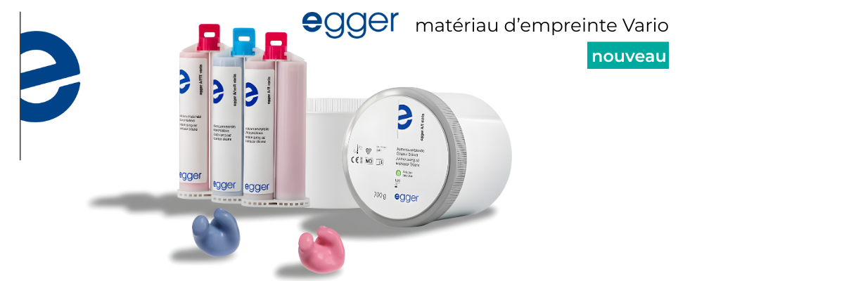 Egger est reconnue pour sa recherche constante d’amélioration, de développement et d’optimisation. Cette volonté de progresser a conduit à une nouvelle gamme de matériaux d’empreinte : Egger Vario. Ainsi, le matériau d’empreinte Egger bien connu adopte non seulement un nouveau nom, mais aussi un caractère tourné vers l’avenir.