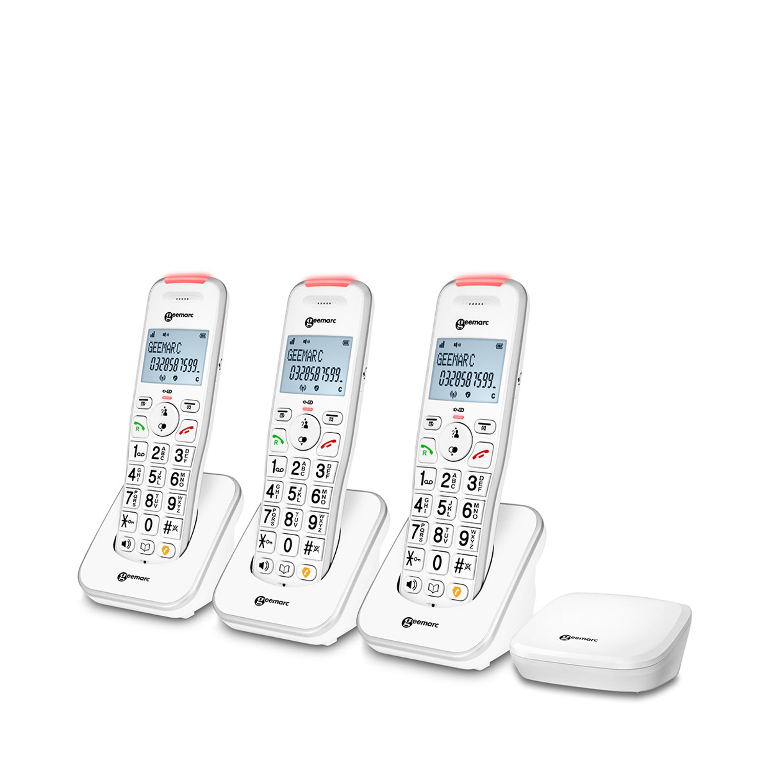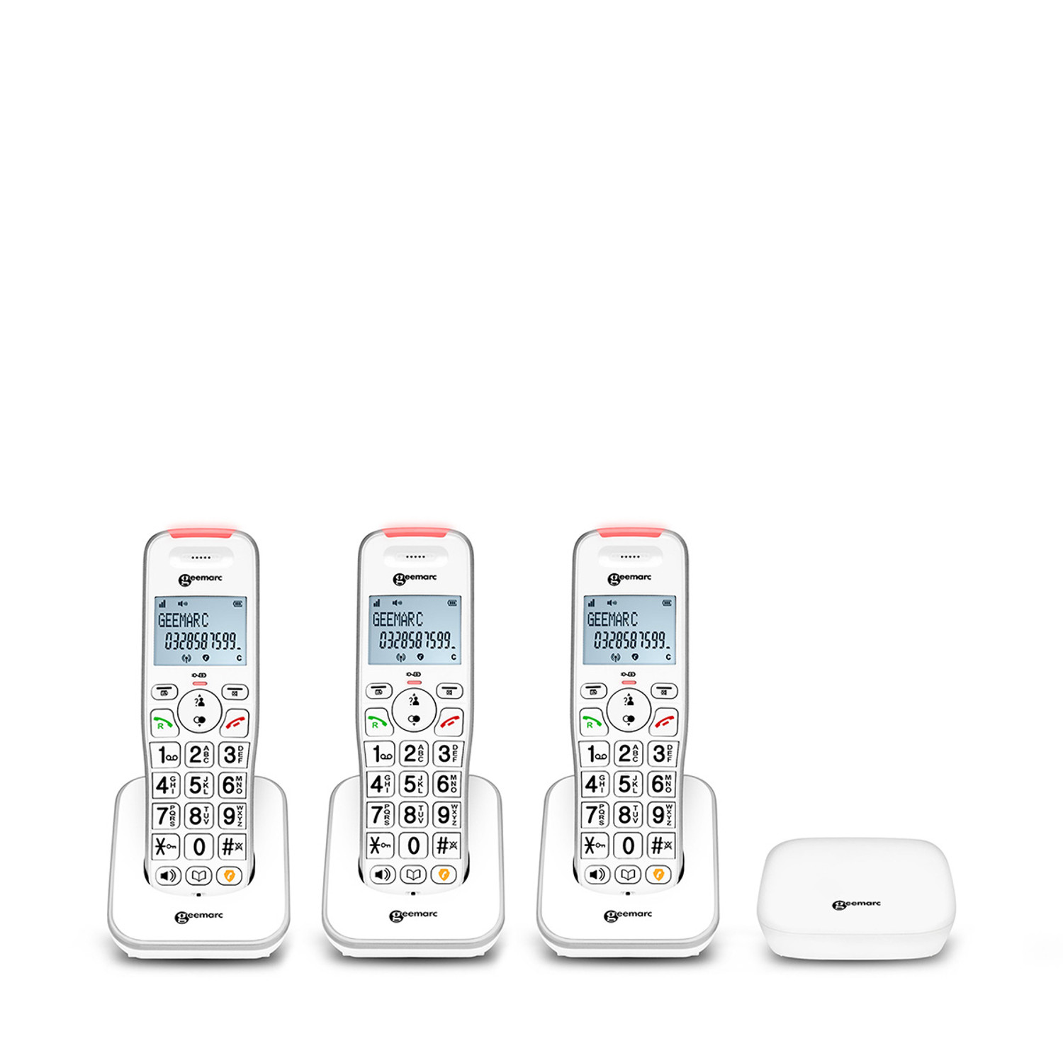 Le geemarc liberty 200 trio téléphone dect est une solution innovante et conviviale pour les clients recherchant la liberté sans fil et une qualité sonore exceptionnelle. Grâce à sa base distincte se connectant directement à la ligne téléphonique, ce modèle est idéal lorsque la ligne se trouve par exemple dans le tableau électrique.