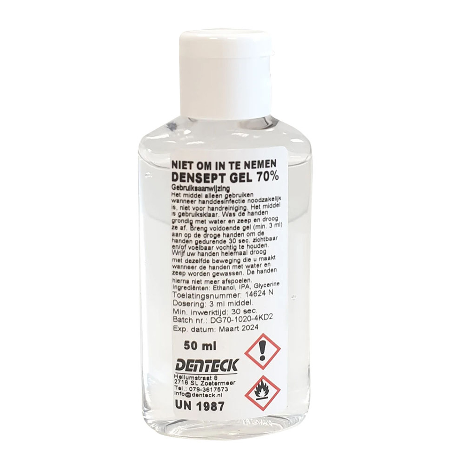 Densept Gel 70% contient de l'alcool éthylique à 70% de qualité Ph Eur.