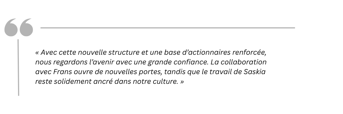 À partir de juillet 2025, la structure actionnariale de l’organisation a été modifiée. Frans Story a repris la participation de Saskia de Wit – Mellink. Désormais, Edwin Mellink et Frans Story détiennent chacun 50 % de BB Synergy B.V. Après 17 années d’engagement intense, Saskia a décidé de céder ses actions pour des raisons de santé. Son implication et sa contribution ont été inestimables dans la construction de l’entreprise. Nous exprimons ici toute notre profonde reconnaissance pour tout ce qu’elle a apporté à notre organisation.