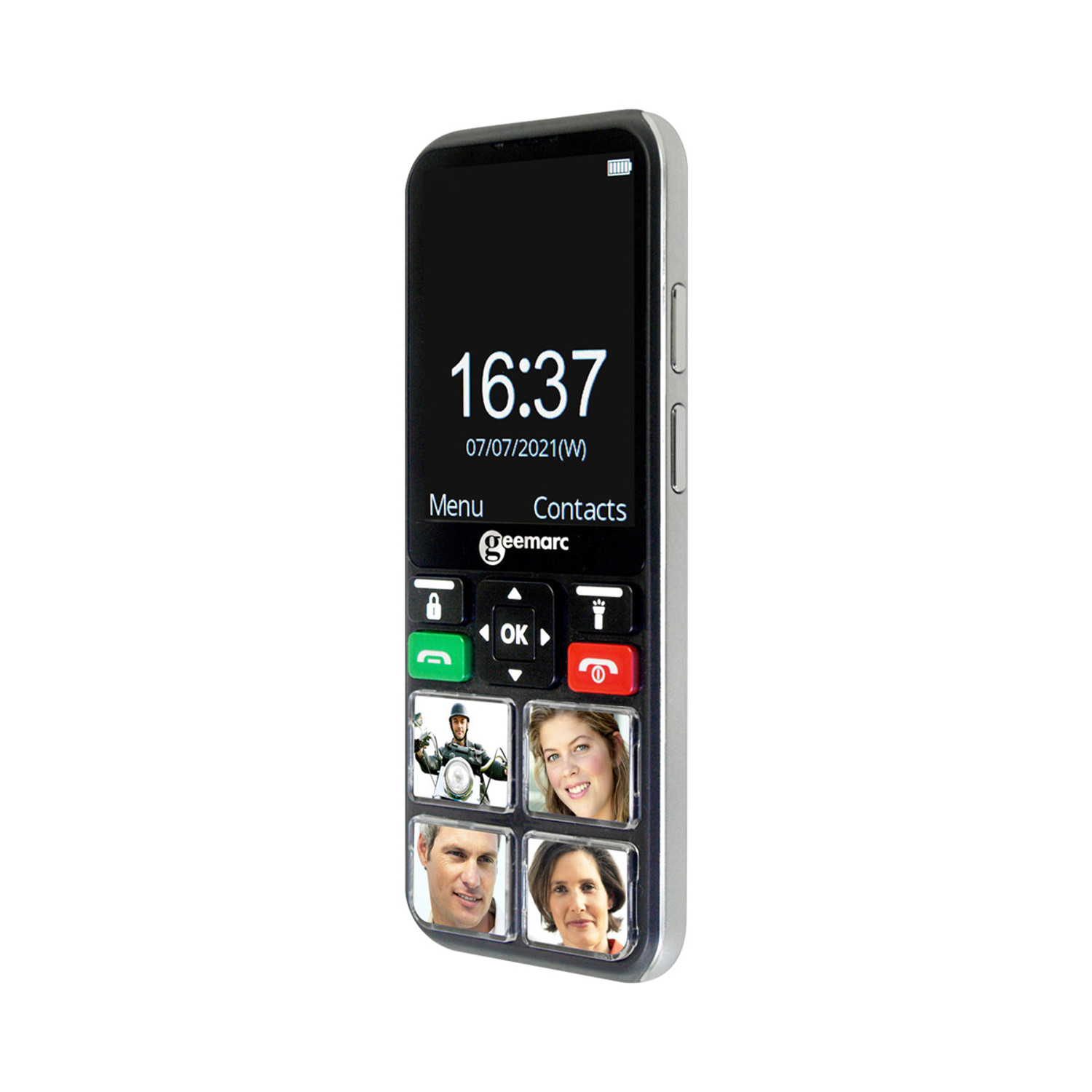 Téléphone 4G simple pour seniors, équipé de quatre touches photo. En appuyant sur une touche photo, le contact est appelé et le téléphone passe en mode haut-parleur. Étant donné que ce téléphone possède des touches photo plutôt que des touches numériques, il est particulièrement adapté pour appeler à partir des 4 touches photo ou de la liste de contacts. La programmation prend un peu plus de temps en raison du clavier "encombré", mais en retour, il est très facile à utiliser !