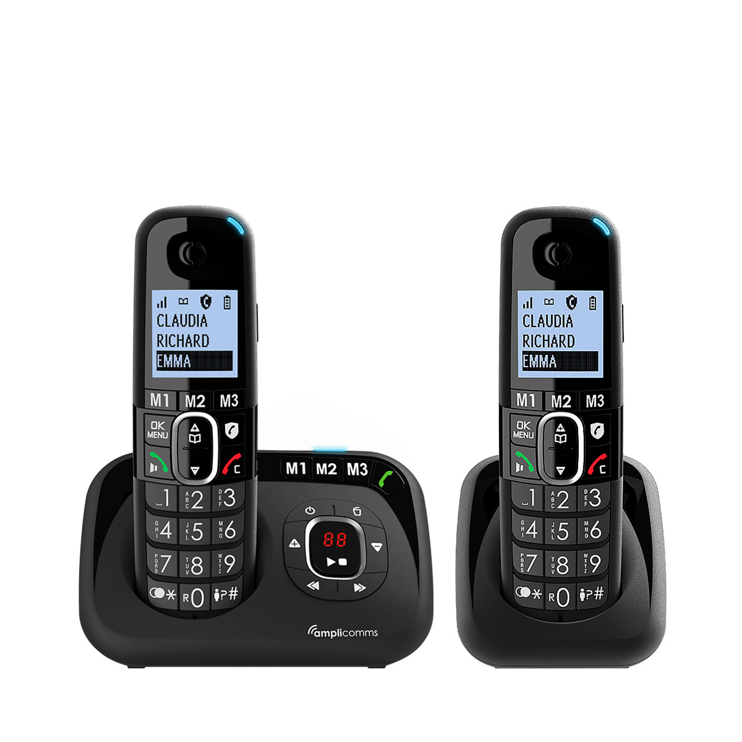 De amplicomms BigTel 1582 is een gebruiksvriendelijke DECT-telefoonset met twee handsets en geïntegreerd antwoordapparaat. Deze telefoon is speciaal ontworpen voor gebruikers die behoefte hebben aan extra luid en helder geluid en een eenvoudige bediening. Met de callblock-functie kunnen ongewenste oproepen eenvoudig worden geblokkeerd, terwijl de drie directe geheugenknoppen (M1, M2, M3) snelle toegang bieden tot veelgebelde contacten.