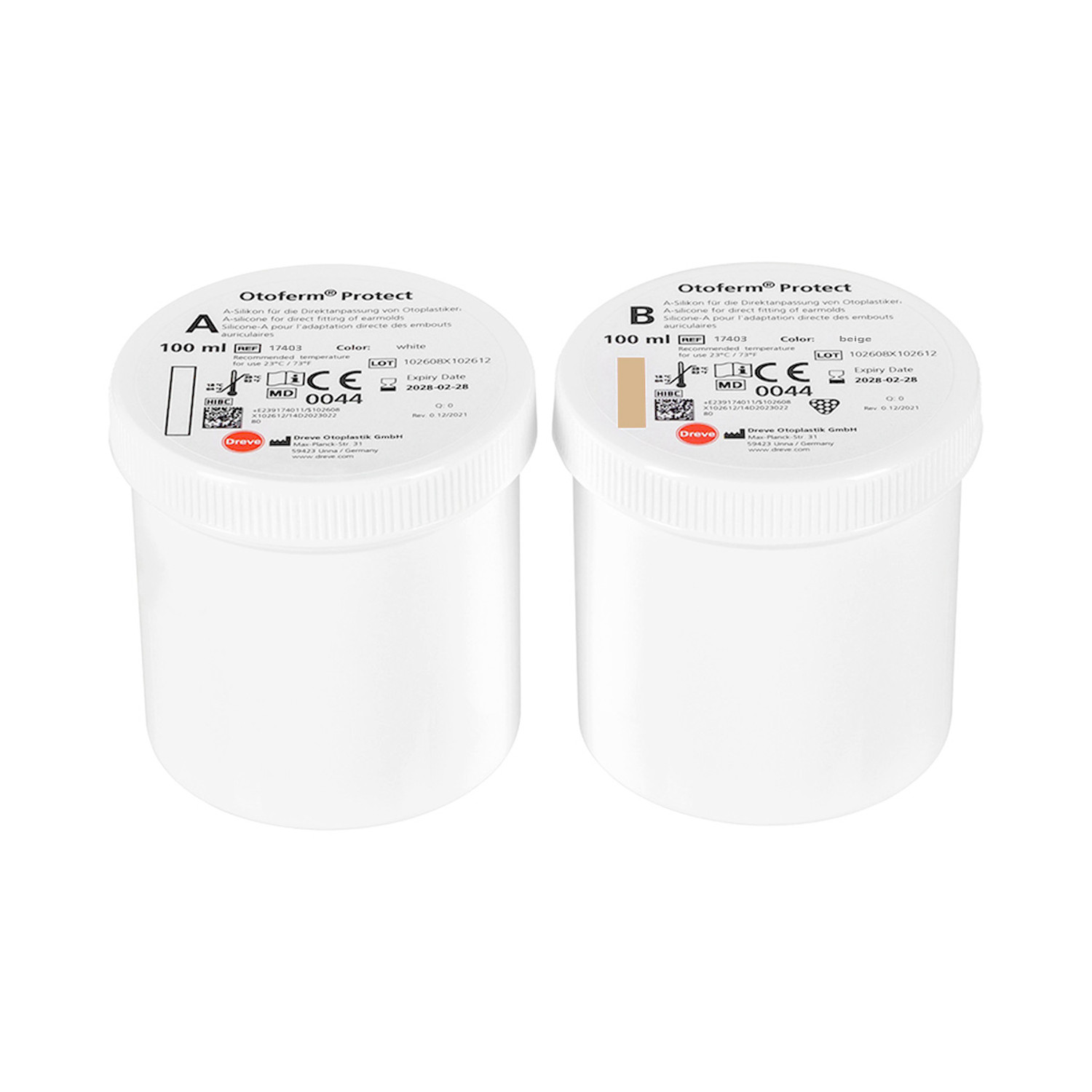 Otoferm Protect afdrukmateriaal van Dreve is een blijvend elastische speciale silicone geschikt voor het vervaardigen van zwem- en gehoorbeschermende oorstukjes.