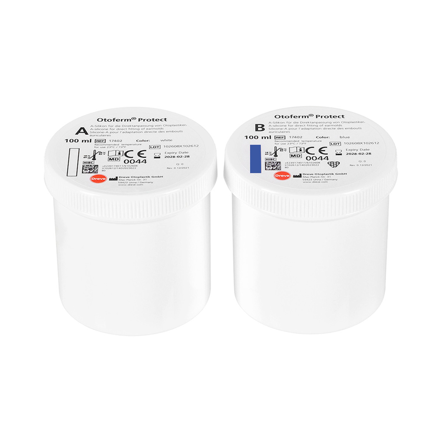 Otoferm Protect afdrukmateriaal van Dreve is een blijvend elastische speciale silicone geschikt voor het vervaardigen van zwem- en gehoorbeschermende oorstukjes.