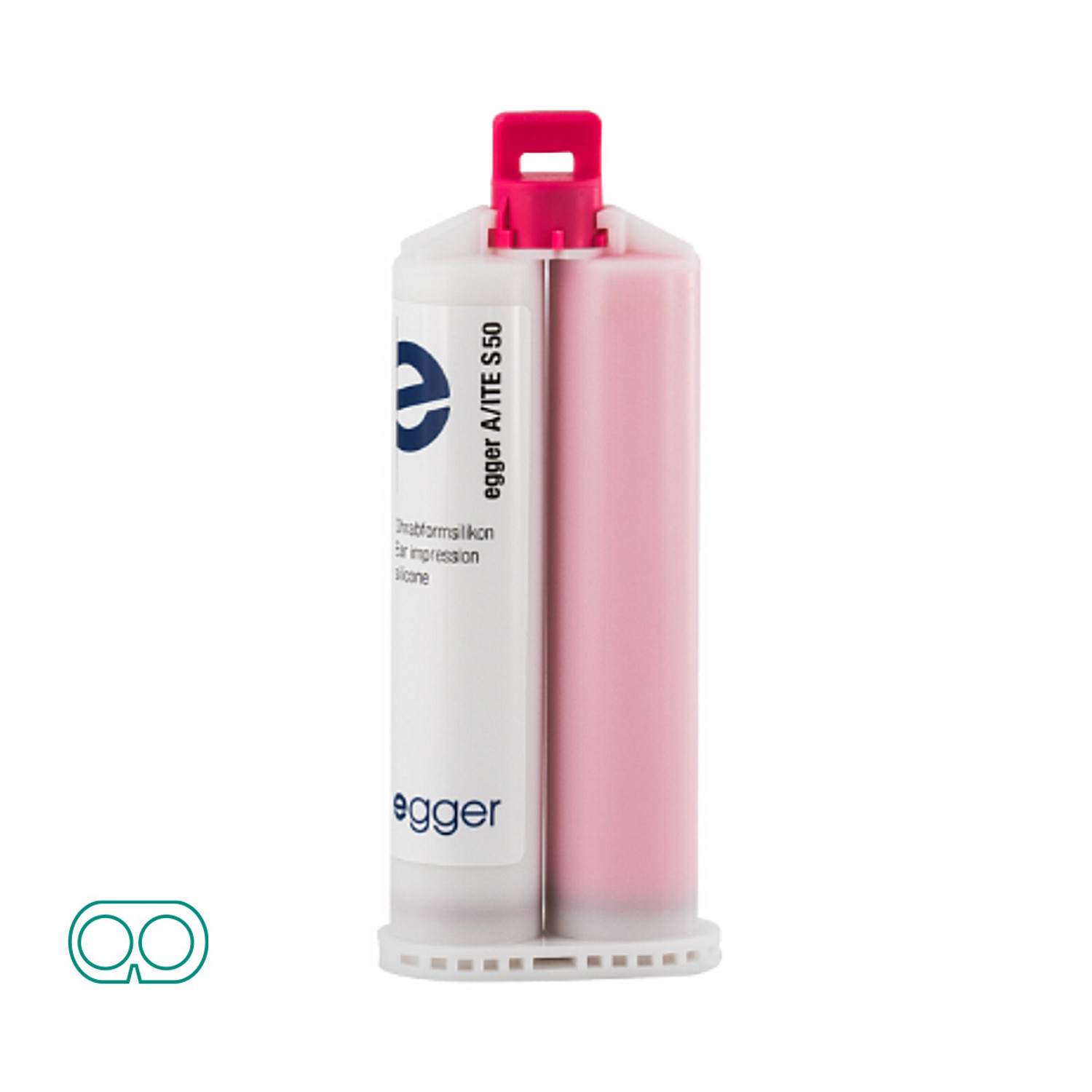 Het A/ITE siliconen afdrukmateriaal in de dubbele S 50 cartridge biedt een uitstekende doorstroming en een hoge mate van vormvastheid. Het materiaal heeft een zeer zachte consistentie en is niet-drukopbouwend. De eindhardheid is 34 shore. Het A/ITE afdrukmateriaal is geschikt voor het maken van CIC afdrukken en afdrukken van smalle gehoorgangen.
