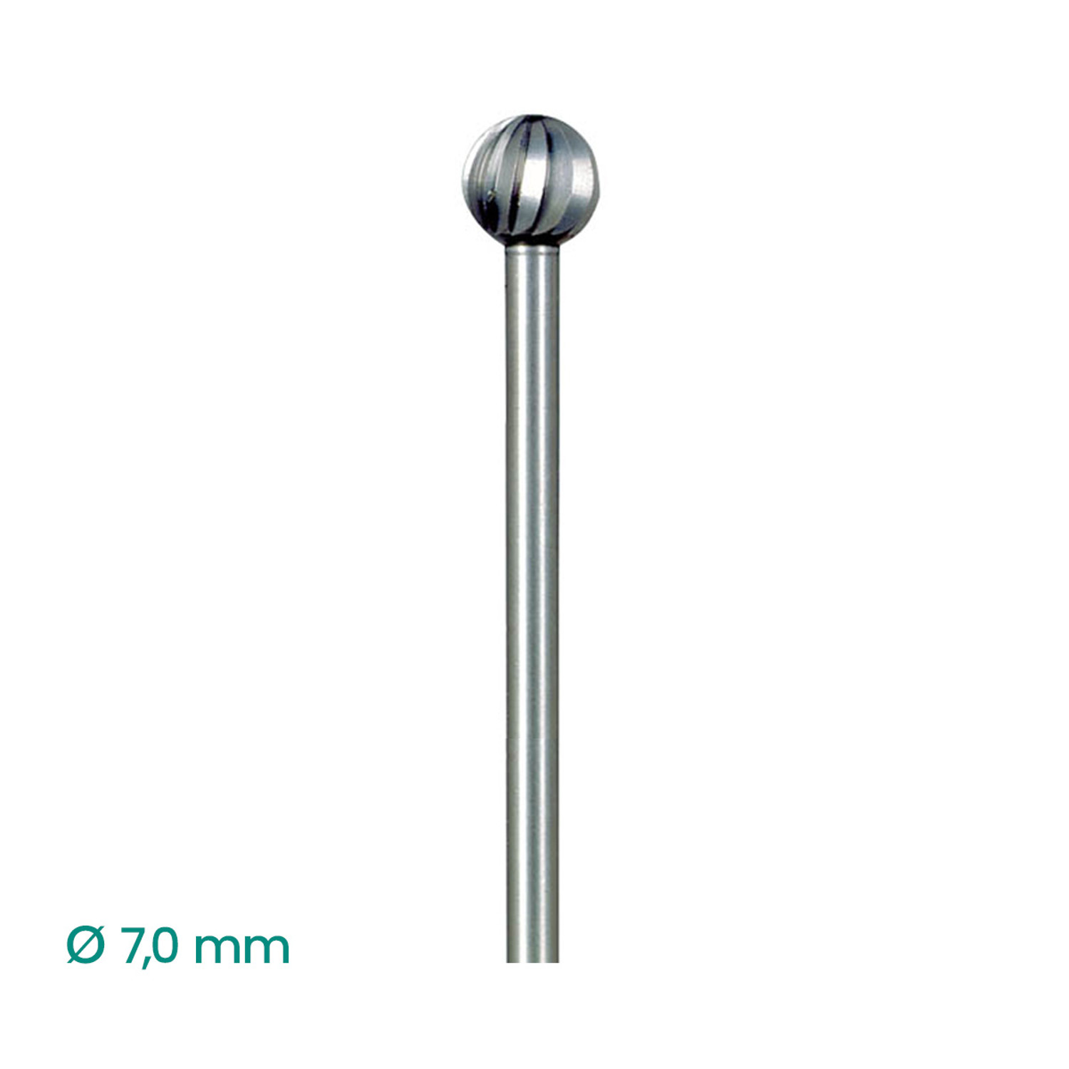 Stalen kogelfrees, 30.000 rpm, Ø 7,0 mm. bestemd voor vervanging van een ringetje van een telefoon oorstukje.