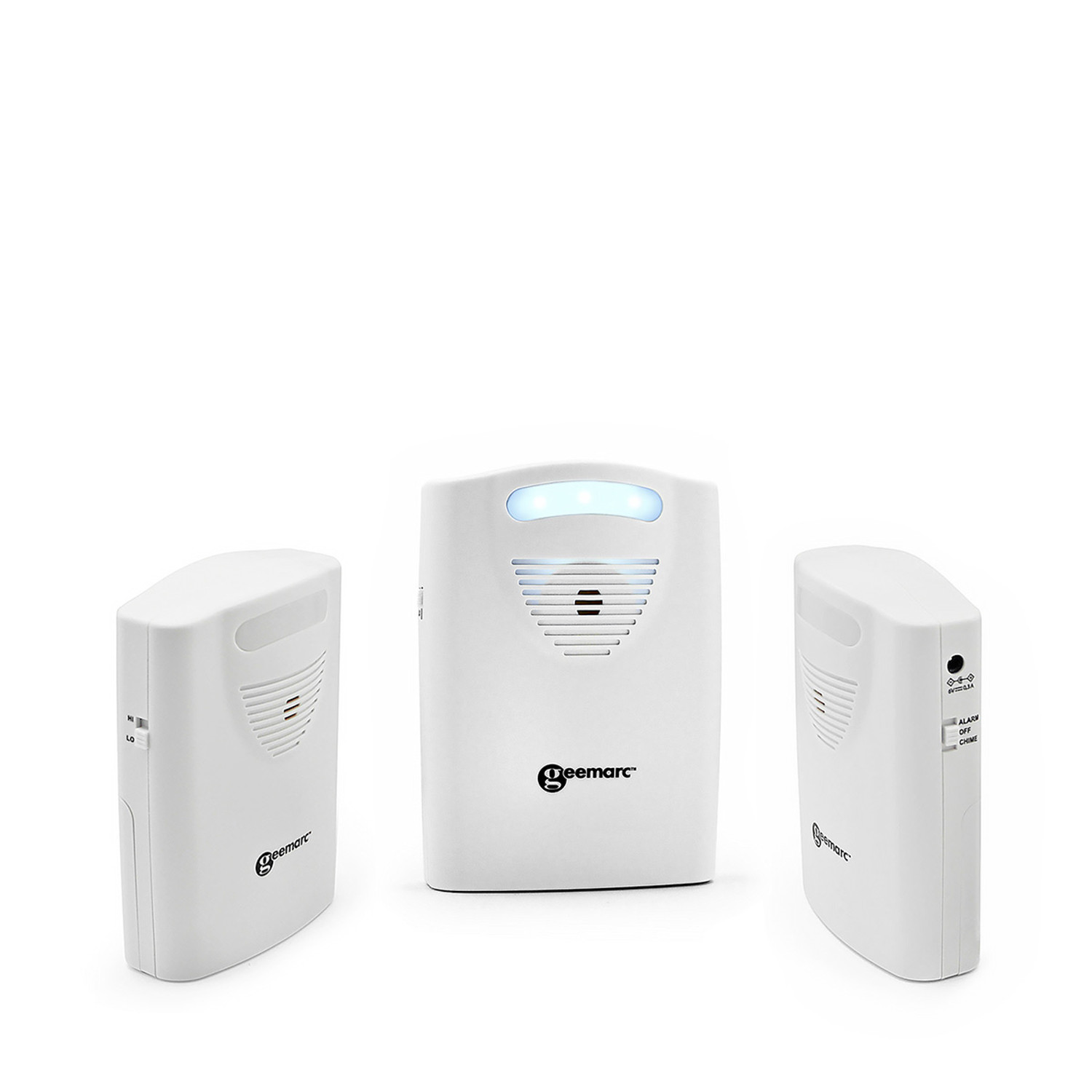 - Drie standen: Alarm (30 sec. geluid + licht), Chime (5 sec. signaal), en Off.