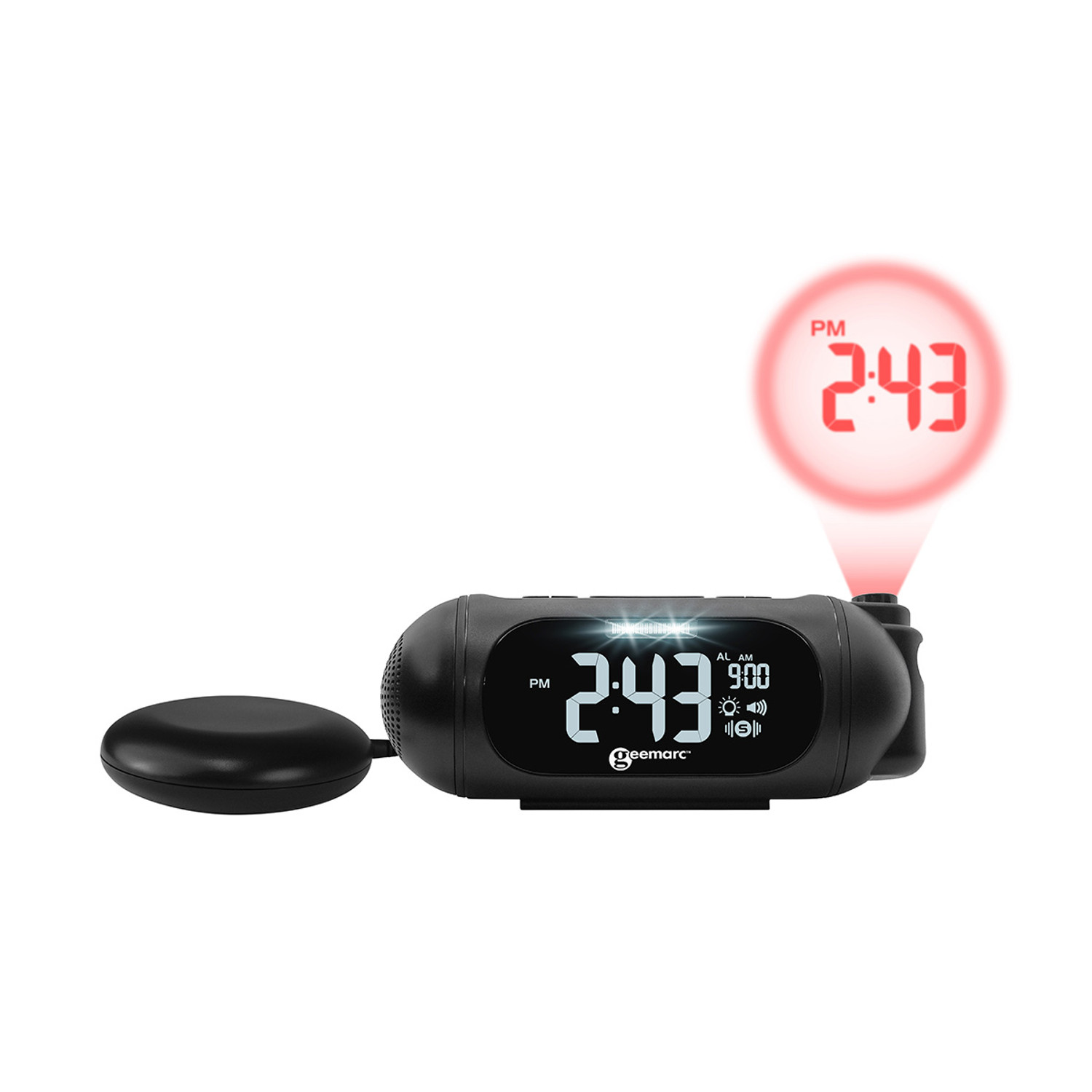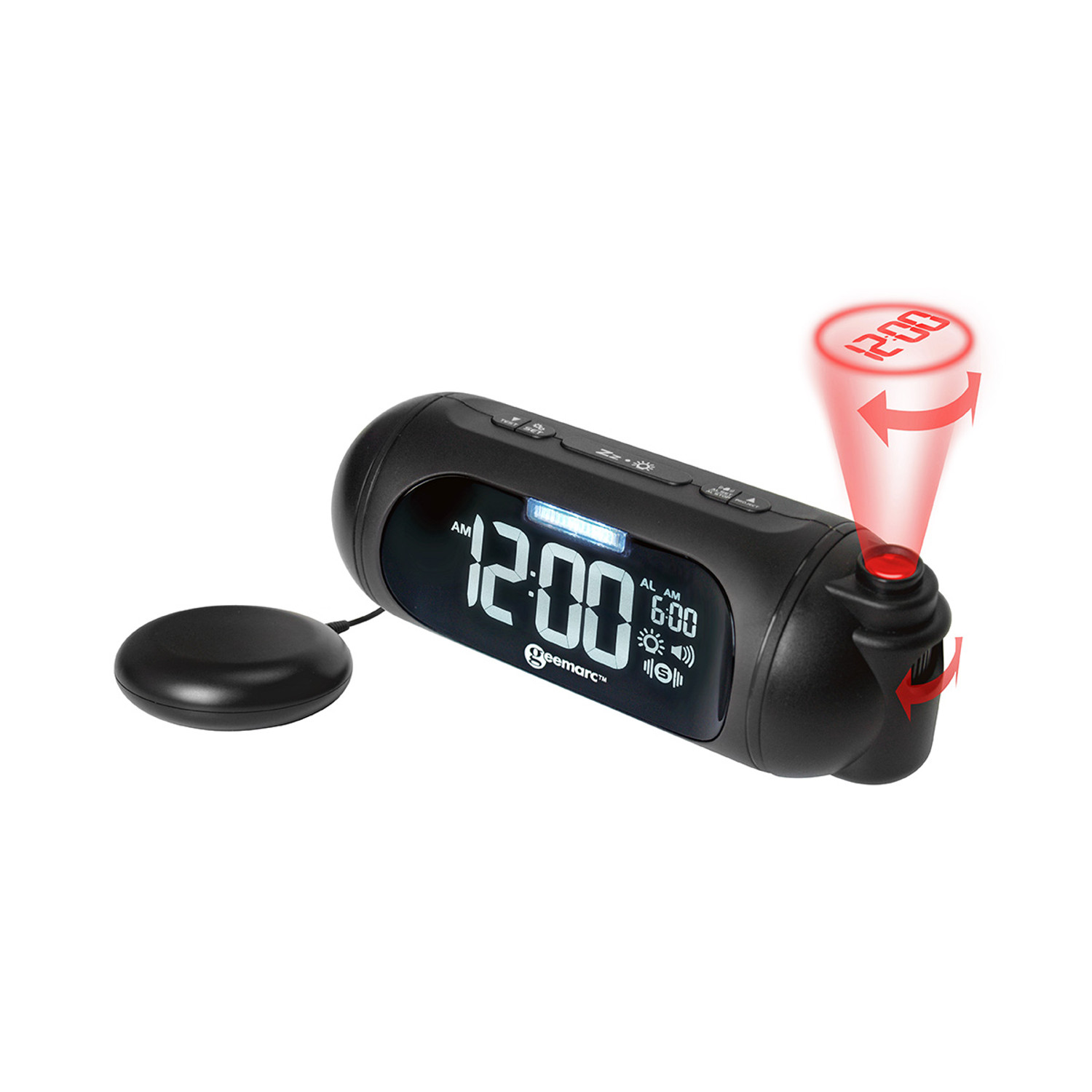 Geemarc Wake’n’Shake SPOT™ is een krachtige wekker met tijdprojectie, trilkussen en extra luid alarm, speciaal ontwikkeld voor slechthorenden en diepe slapers. Dankzij de combinatie van geluid, lichtflits en trilling biedt dit model een betrouwbare en veelzijdige wekoplossing. De rode projectielamp projecteert de tijd op muur of plafond, zodat deze altijd duidelijk zichtbaar is, zelfs in het donker.