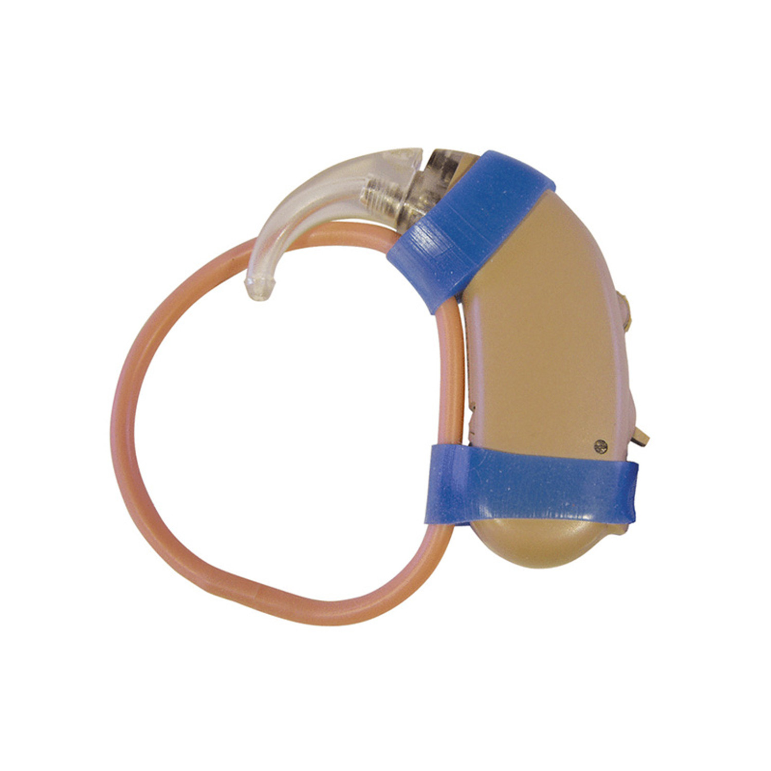 Met koord en clip. Eenvoudige en praktische oplossing voor het op de plaats houden van het hoortoestel achter het oor, voorkomt vallen.