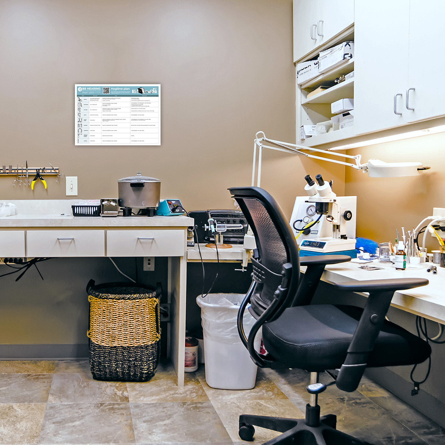 De hygiëne plan kleurenposter A3 is ideaal voor zichtbare plaatsing in de werkplaats of kantoorruimte van de audicienspraktijk. Dankzij de duidelijke weergave fungeert de poster als geheugensteun bij dagelijkse werkzaamheden en bevordert deze naleving van de geldende hygiënerichtlijnen. Door de combinatie van een gedrukte versie en een online variant met interactieve links, blijft het plan altijd toegankelijk en up-to-date. Dit maakt de poster tot een onmisbaar hulpmiddel voor een gestructureerde en hygiënische werkomgeving.