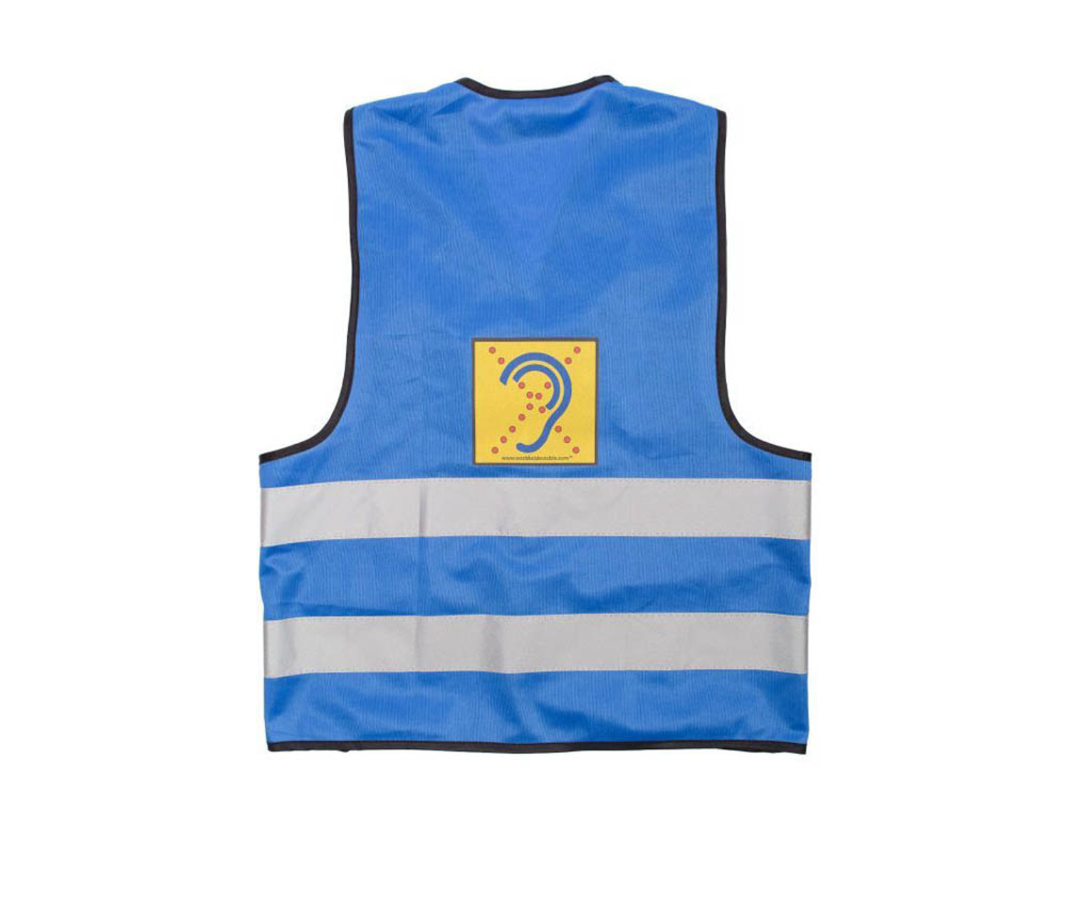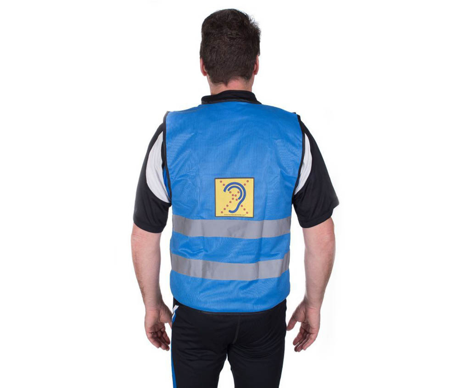 Zichtbaarheidshesje met op de achterzijde een reflecterend Limited Hearing symbool.
