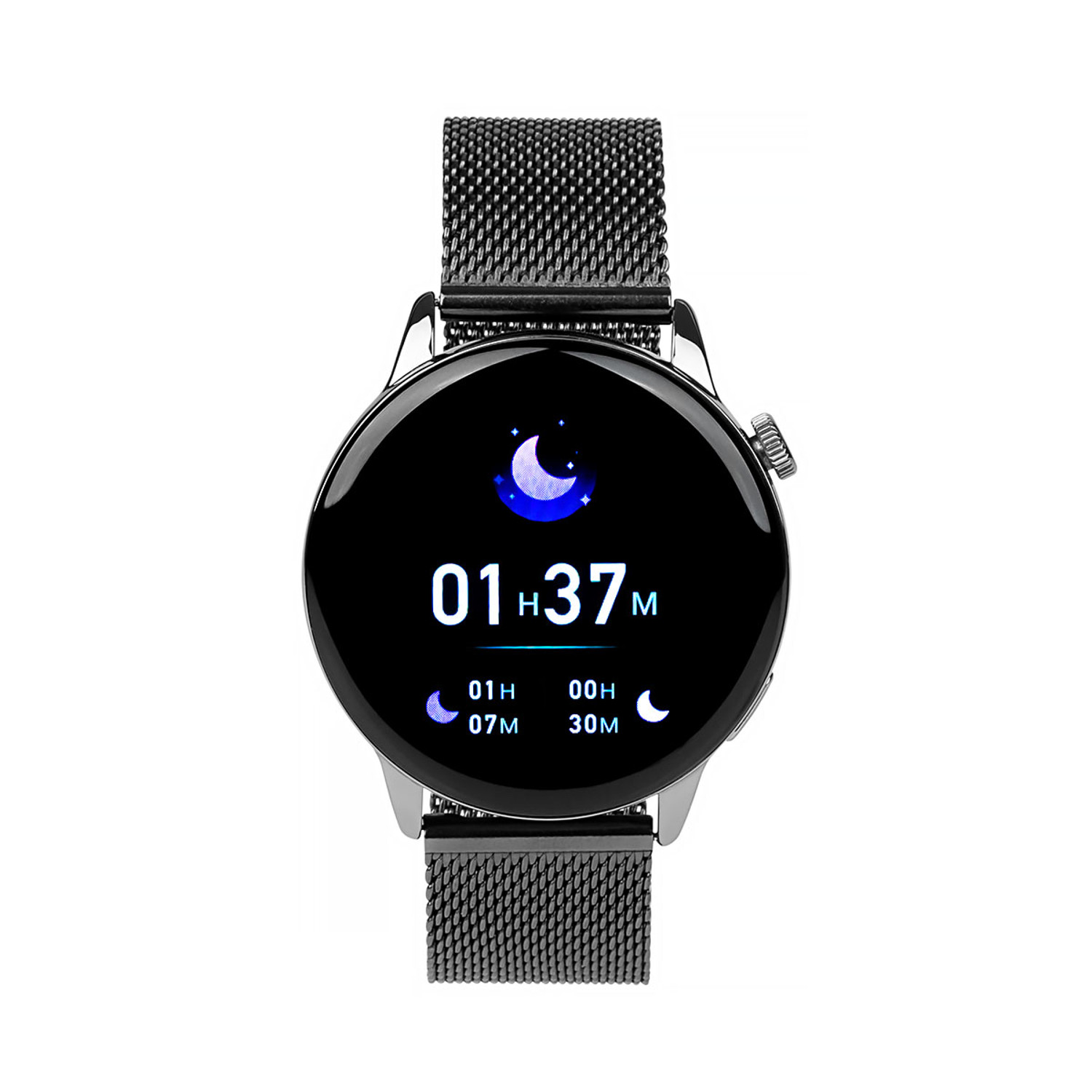 Veelzijdige smartwatch met 1,3 inch AMOLED touchscreen. De belangrijkste functionaliteiten van het horloge zijn de slaapcontrole, stappenteller, hartslagmeting, saturatiemeter, bloeddrukmeter en sportmodus.